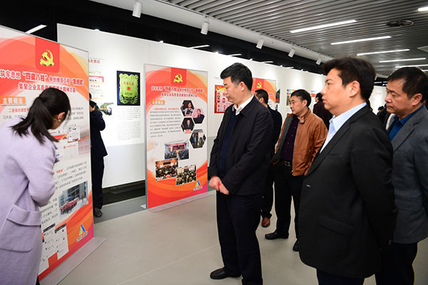 在達(dá)欣集團(tuán)企業(yè)展示中心,嚴(yán)長(zhǎng)江一行參觀了“筑牢思想‘四梁八柱’ 爭(zhēng)創(chuàng)燎原工程‘魯班獎(jiǎng)’”主題展板,詳細(xì)了解了企業(yè)黨員冬訓(xùn)工作開(kāi)展情況,對(duì)黨建工作的創(chuàng)新做法給予了肯定。集團(tuán)董事長(zhǎng)、黨委副書(shū)記馬和軍陪同參觀。