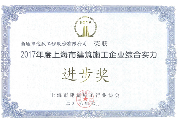 此外,公司還被評(píng)為2017年度上海市建筑施工企業(yè)綜合實(shí)力進(jìn)步獎(jiǎng)稱號(hào)。