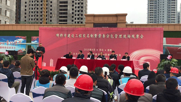 4月19日上午,邯鄲市建設(shè)局、公安局聯(lián)合在邯鄲高鐵站東側(cè)榮科佳苑項(xiàng)目舉行“邯鄲市建設(shè)工程實(shí)名制暨勞務(wù)分包管理現(xiàn)場(chǎng)觀會(huì)”。市公安局副局長(zhǎng)梁海民、李強(qiáng)、市建管辦副主任連書民、市建管辦分包處處長(zhǎng)郭長(zhǎng)印、全市各區(qū)縣建設(shè)局主管副局長(zhǎng)以及各建設(shè)、施工監(jiān)理單位負(fù)責(zé)人、勞務(wù)企業(yè)負(fù)責(zé)人等500多人參加會(huì)議。