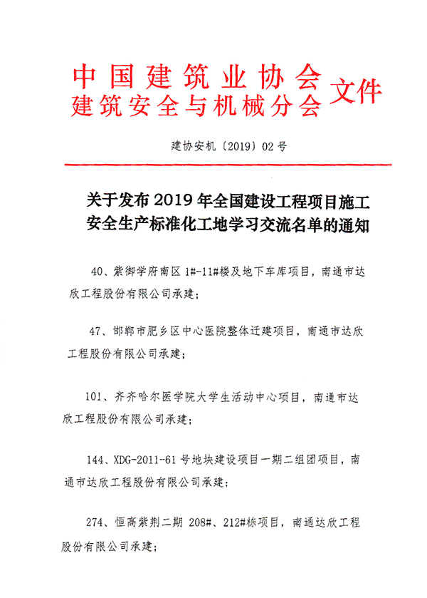 “全國(guó)建設(shè)工程項(xiàng)目施工安全生產(chǎn)標(biāo)準(zhǔn)化工地”由中國(guó)建筑協(xié)會(huì)建筑安全分會(huì)在全國(guó)范圍內(nèi)組織開展的大型評(píng)選活動(dòng),是國(guó)家建設(shè)部批準(zhǔn)的全國(guó)范圍內(nèi)建筑安全文明施工領(lǐng)域的最高獎(jiǎng)項(xiàng),旨在規(guī)范施工安全生產(chǎn)工作,保障建筑職工生命安全與健康。此項(xiàng)殊榮的獲得,將進(jìn)一步提高了集團(tuán)項(xiàng)目的標(biāo)準(zhǔn)化管理水平,營(yíng)造良好的安全生產(chǎn)氛圍,為提升企業(yè)形象、促進(jìn)企業(yè)長(zhǎng)遠(yuǎn)發(fā)展奠定堅(jiān)實(shí)的品牌基礎(chǔ)。