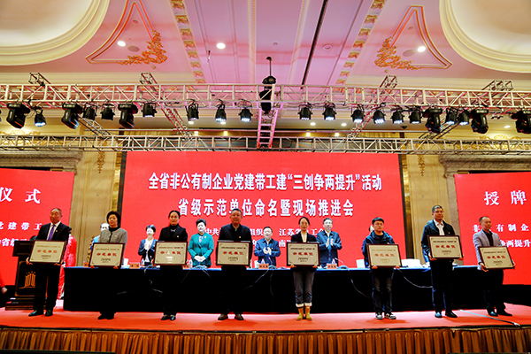 11月18日,江蘇省非公有制企業(yè)黨建帶工建“三創(chuàng)爭(zhēng)兩提升”活動(dòng)省級(jí)示范單位命名暨現(xiàn)場(chǎng)推進(jìn)會(huì)在南通召開。會(huì)上,對(duì)100家江蘇省非公有制企業(yè)黨建帶工建“三創(chuàng)爭(zhēng)兩提升”活動(dòng)示范單位進(jìn)行了命名,達(dá)欣集團(tuán)榜上有名,集團(tuán)副總經(jīng)理、工會(huì)主席溫鶴華作為單位代表上臺(tái)接受授牌。