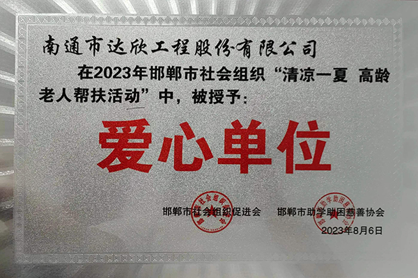 近日,集團(tuán)第三工程公司積極參與由邯鄲市民政局倡導(dǎo),邯鄲市社會組織促進(jìn)會、邯鄲市助學(xué)助困慈善協(xié)會共同承辦的“清涼一夏 高齡老人幫扶慰問”活動,并被授予“愛心單位”榮譽稱號。