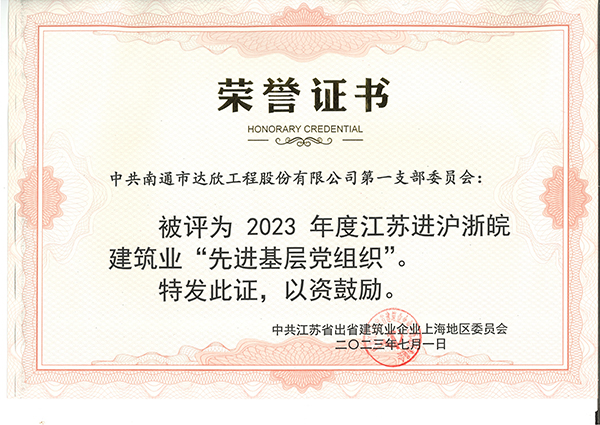 近日,從江蘇省住房和城鄉(xiāng)建設(shè)廳駐上海辦事處傳來喜訊,集團(tuán)第一黨支部委員會被評為“2023年度江蘇進(jìn)滬浙皖建筑業(yè)先進(jìn)基層黨組織”榮譽稱號,倪志榮同志獲“全省住房和城鄉(xiāng)建設(shè)行業(yè)優(yōu)秀共產(chǎn)黨員”、馬寧偉同志獲“江蘇進(jìn)滬浙皖建筑業(yè)優(yōu)秀共產(chǎn)黨員”、陳元國同志獲“江蘇進(jìn)滬浙皖建筑業(yè)優(yōu)秀黨務(wù)工作者”。