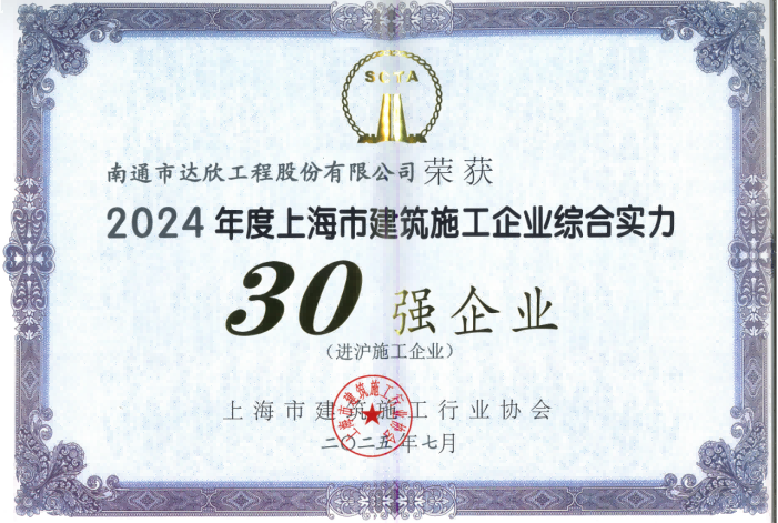 近日,上海市建筑施工行業(yè)協(xié)會(huì)公布了2024年度上海市建筑施工企業(yè)綜合實(shí)力結(jié)果,第一工程公司連續(xù)十八年獲評(píng)“上海市建筑施工企業(yè)綜合實(shí)力30強(qiáng)企業(yè)”和“上海市建筑業(yè)誠(chéng)信企業(yè)”稱號(hào)。