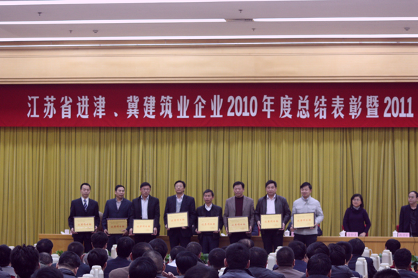 2011年3月20日,江蘇省進(jìn)津、冀建筑業(yè)企業(yè)2010年度總結(jié)表彰暨2011年工作大會在天津大禮堂隆重召開。大會由江蘇省建設(shè)廳駐天津辦事處副主任韓勁松主持,主任鄧福林作了“搶抓新機(jī)遇,謀劃新發(fā)展,不斷開創(chuàng)江蘇建筑業(yè)新局面”的工作報(bào)告,對2010年的工作進(jìn)行回顧,并提出2011年工作目標(biāo)任務(wù)。江蘇省建筑工程管理局副局長紀(jì)迅、天津市外地施工隊(duì)伍管理站站長吳海、江蘇省住房和城鄉(xiāng)建設(shè)廳監(jiān)察室主任王毅、計(jì)劃賬務(wù)處調(diào)研員徐和美等江蘇省、天津市的主管部門領(lǐng)導(dǎo)應(yīng)邀出席了會議,紀(jì)迅局長、吳海站長作了重要講話。