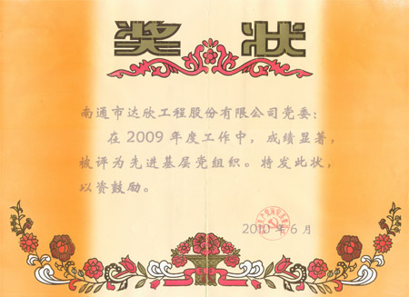 2010年公司成立黨委,在新一屆黨委的領(lǐng)導(dǎo)下,公司全體黨員積極開(kāi)展創(chuàng)先爭(zhēng)優(yōu)活動(dòng),以“腳手架上黨旗揚(yáng)”為主題,將支部建在項(xiàng)目上,做到“關(guān)鍵崗位有黨員、困難面前有黨員、突擊攻關(guān)有黨員,黨員帶頭技改創(chuàng)新、帶頭攻堅(jiān)克難、帶頭建功立業(yè)”,充分發(fā)揮黨、團(tuán)、工會(huì)組織在施工生產(chǎn)和經(jīng)濟(jì)建設(shè)中的先鋒堡壘作用,促進(jìn)企業(yè)和諧發(fā)展。公司劉厚純、馬和軍、徐仁忠、徐桂壽等4人被海安工業(yè)園區(qū)黨委、胡集鎮(zhèn)黨委評(píng)為優(yōu)秀共產(chǎn)黨員。