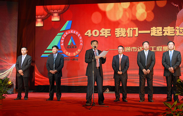 公司董事長馬和軍進(jìn)行了致辭答謝。他說在這樣一個(gè)特殊的時(shí)刻和一個(gè)特殊的地點(diǎn),我們正做著一件具有特別意義的事情。我們一起回顧達(dá)欣的光榮歷史,一起回味達(dá)欣40年來經(jīng)歷的風(fēng)風(fēng)雨雨,一起品嘗我們用勤勞和智慧的雙手?jǐn)€獲的豐收和喜悅。40年來,我們始終堅(jiān)持改革,并最終受益于改革;40年來,我們傳承并不斷發(fā)揚(yáng)光大著一種精神,這種精神的核心就是“艱苦奮斗,以身作則”、“團(tuán)結(jié)拼搏,顧全大局”、“凝心聚力,勇于爭(zhēng)先”;40年來,在達(dá)欣這個(gè)大家庭中始終洋溢著一種濃濃的情誼。站在達(dá)欣40年這個(gè)歷史新起點(diǎn)上,相信達(dá)欣的光輝旗幟,一定會(huì)更好地迎風(fēng)展揚(yáng)、高高展揚(yáng)、百年展揚(yáng);在熱烈的掌聲中,縣委書記陸衛(wèi)東發(fā)表重要講話,他指出,今天我們共同見證和分享達(dá)欣集團(tuán)四十年發(fā)展的成功和喜悅,作為縣內(nèi)的標(biāo)桿建筑企業(yè),達(dá)欣步入了公司歷史以來發(fā)展最快、榮譽(yù)最高、分配最多、貢獻(xiàn)最大的時(shí)期,他希望公司要進(jìn)一步深化改革,加快發(fā)展,高起點(diǎn)定位,突出重點(diǎn),好中求快,實(shí)現(xiàn)達(dá)欣集團(tuán)的新飛躍。