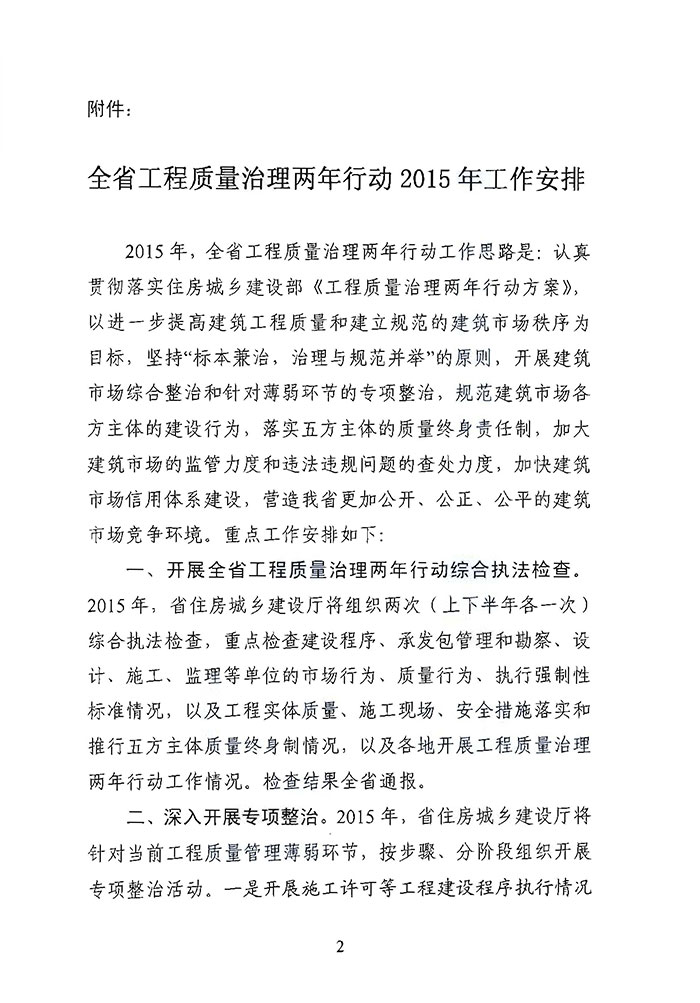 省住房城鄉(xiāng)建設(shè)廳關(guān)于印發(fā)《全省工程質(zhì)量治理兩年行動(dòng)2015年工作安排》的通知